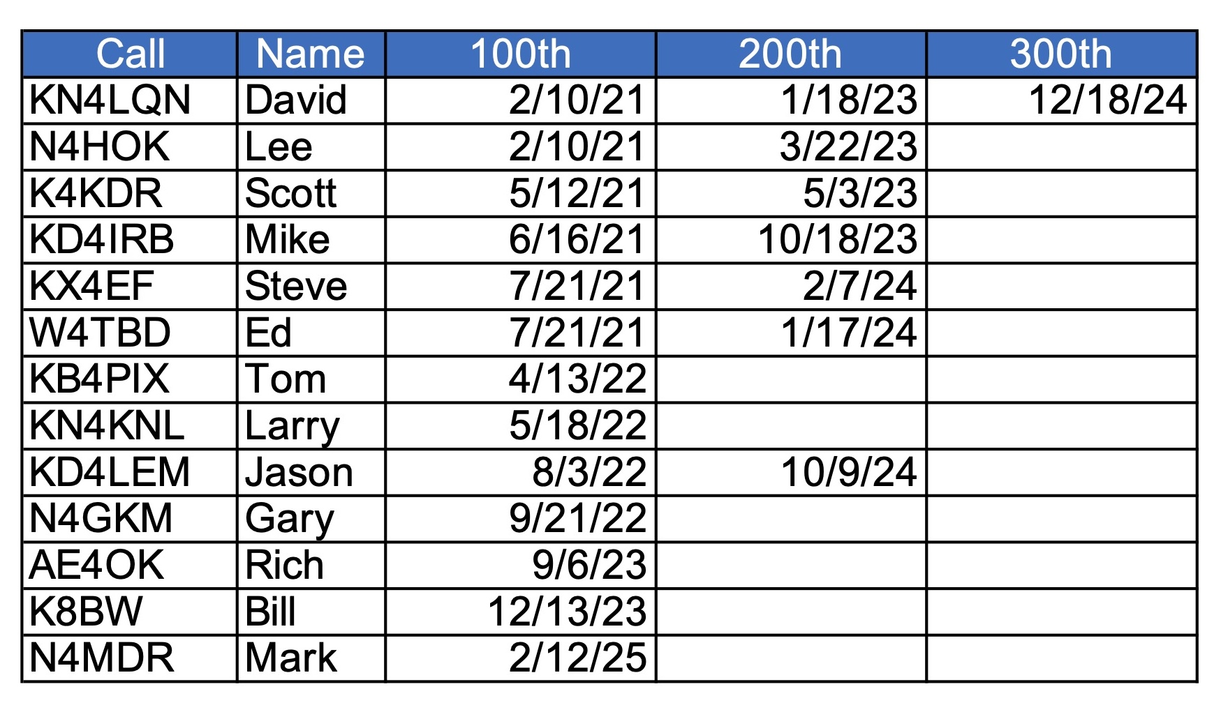 Central Virginia P2P Net Century Club